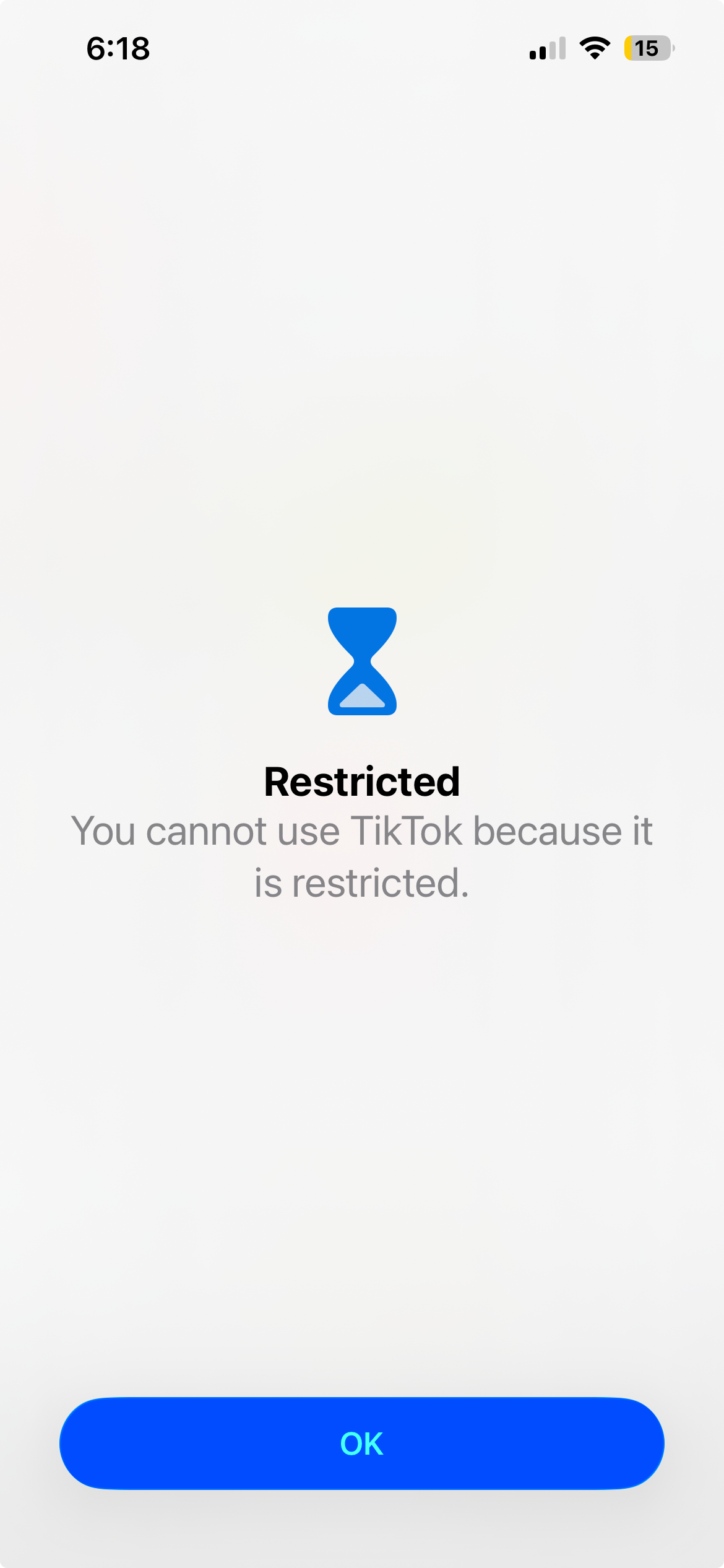 If access to a blocked app is attempted during a focus session, this screen will appear. The focus session has to be manually ended in the MonoFocus App for access to return.
